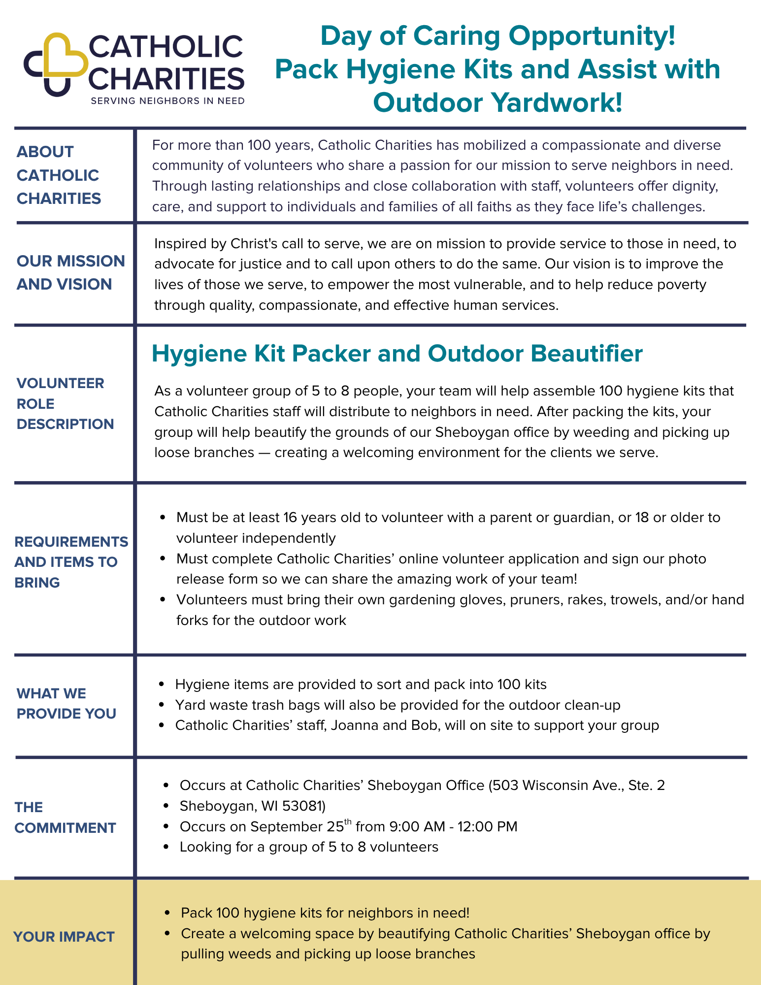 Day of Caring 2025 Hygiene Kit Packing and Outdoor Yardwork