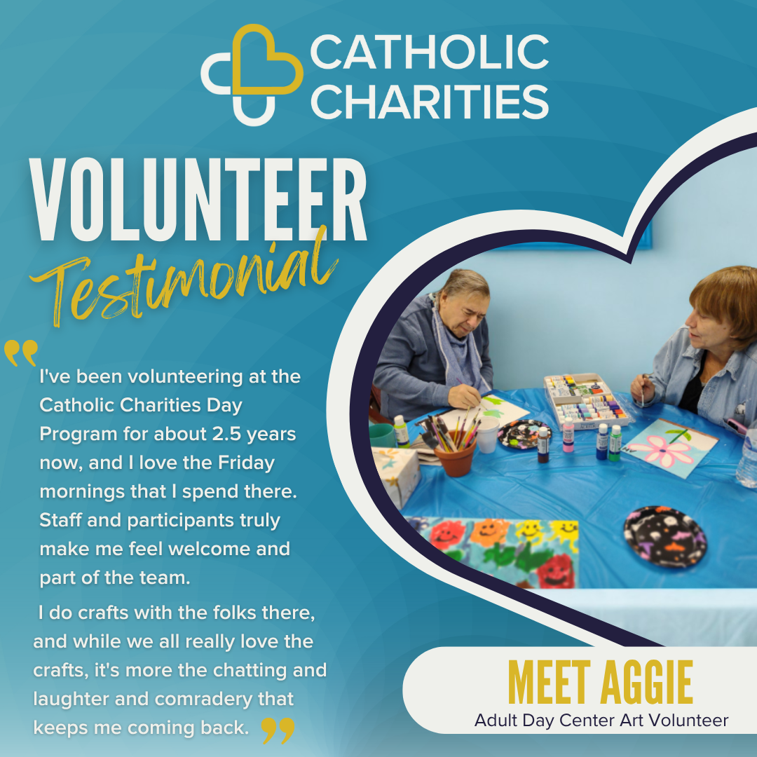 By providing a safe, supportive environment at Catholic Charities’ Adult Day Center for older adults and adults with disabilities, we offer caregivers the reliable daytime care they need for their loved ones in order to maintain employment, manage daily responsibilities, and care for themselves. With your support, families can find balance, reduce stress, and ensure their loved ones are engaged, well-cared for, and part of a vibrant community during the day.