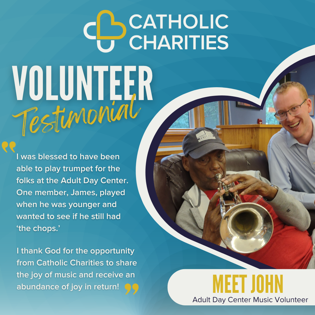 By providing a safe, supportive environment at Catholic Charities’ Adult Day Center for older adults and adults with disabilities, we offer caregivers the reliable daytime care they need for their loved ones in order to maintain employment, manage daily responsibilities, and care for themselves. With your support, families can find balance, reduce stress, and ensure their loved ones are engaged, well-cared for, and part of a vibrant community during the day.